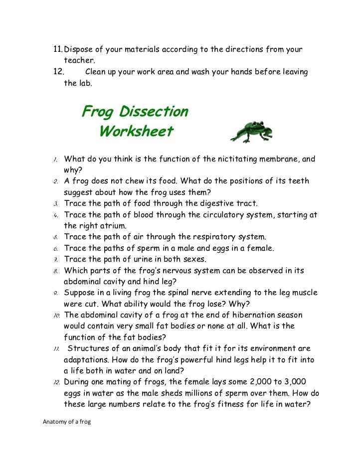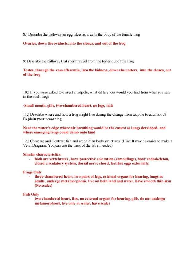 Overall, a frog dissection worksheet answer key is a beneficial resource for anyone teaching or learning about the anatomy of frogs. By providing an answer key, the instructor can quickly check student work for accuracy and address any mistakes or misconceptions. This allows for more effective instruction and ultimately leads to greater understanding and retention of the material.