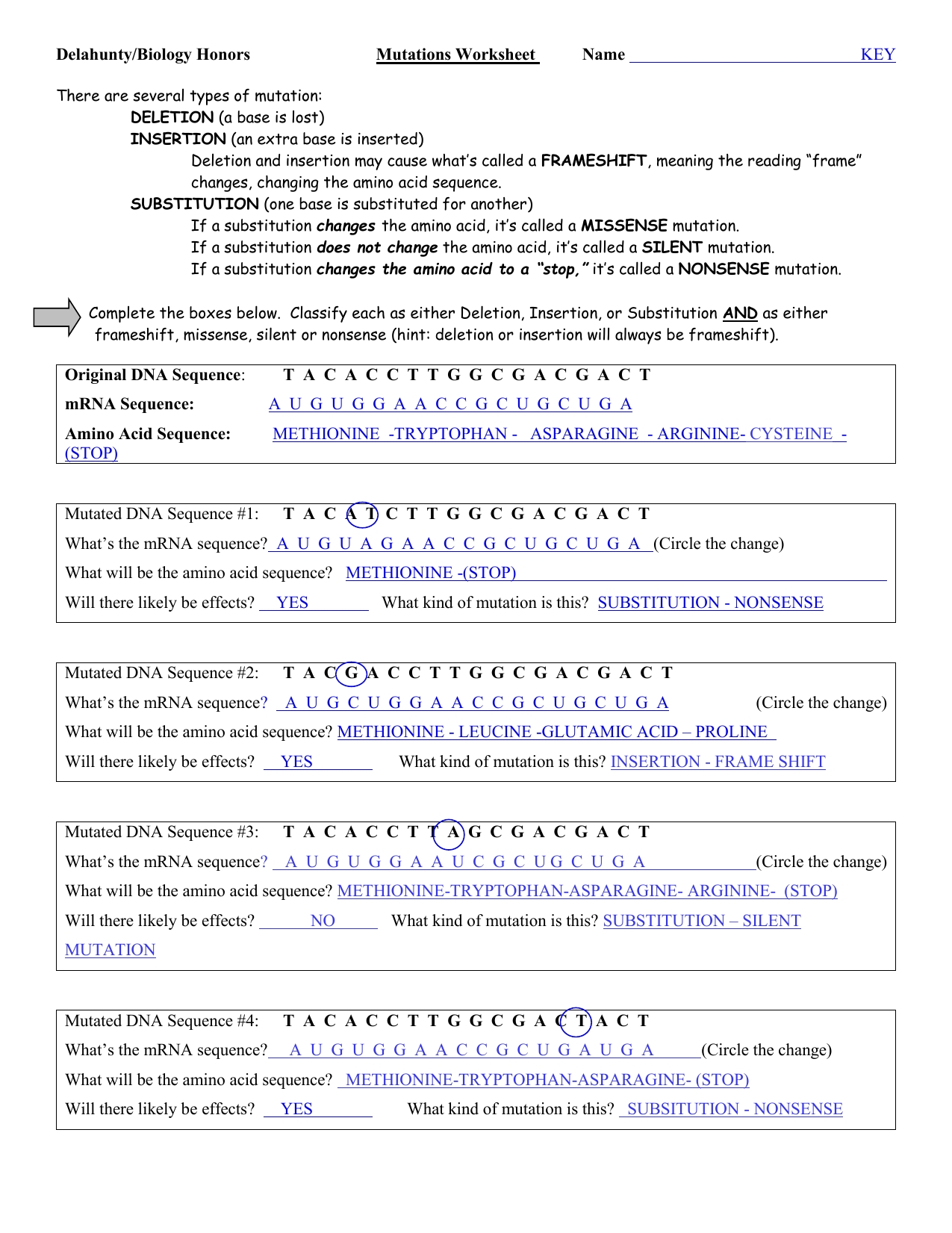 Genetic Mutation Worksheet Answer Key Inside Genetics Worksheet Answer Key