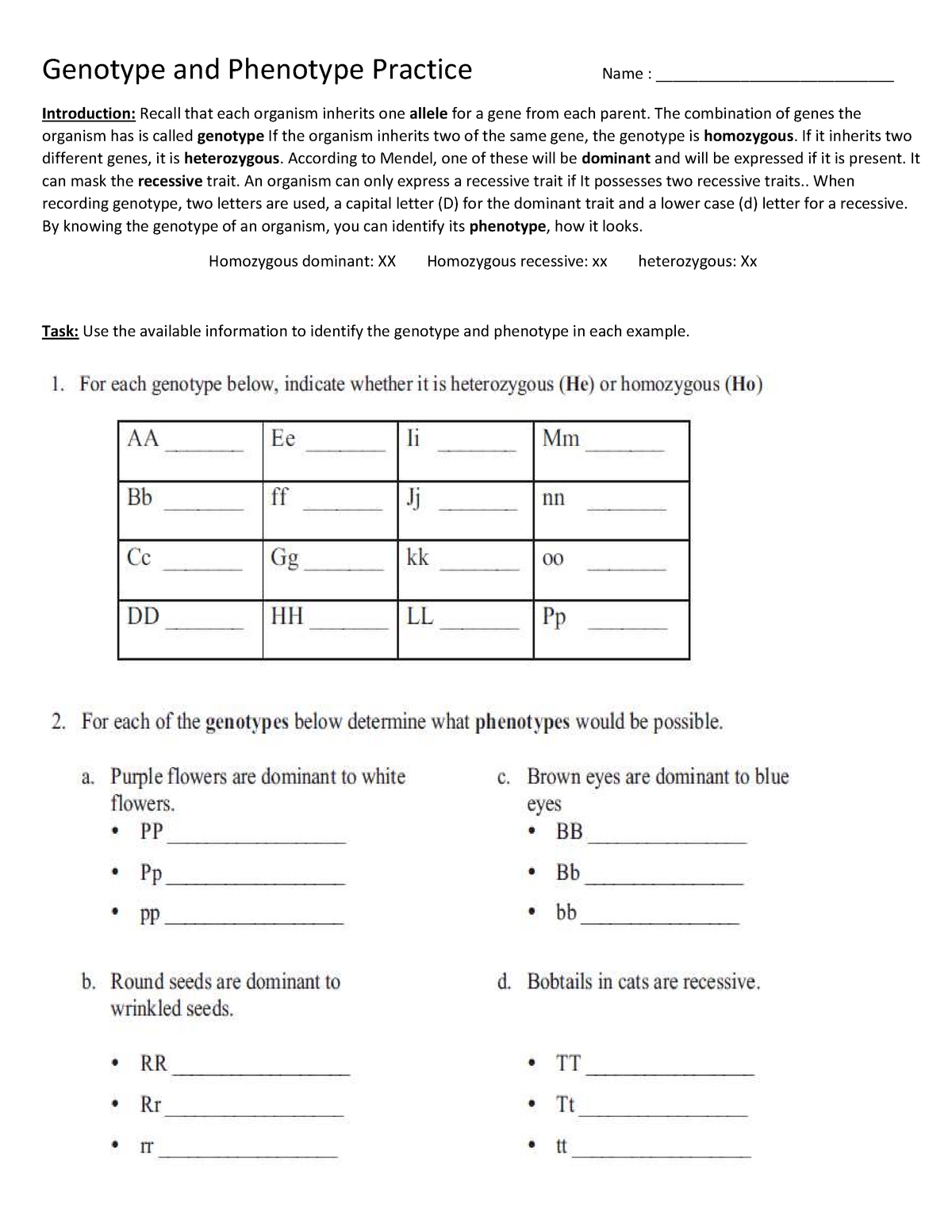 Genotype And Phenotype Worksheet 2 - Genotype And Phenotype Practice Throughout Genotypes And Phenotypes Worksheet
