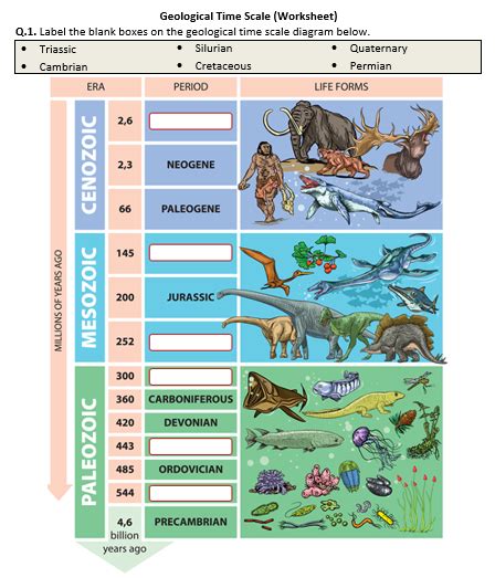 Using a geological time scale worksheet in the classroom can be a great way to introduce students to the concept of geological time. By providing students with a visual representation of the Earth’s history, they can gain a better understanding of the magnitude of geological time and the various events that have shaped the planet.