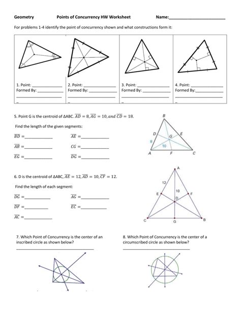 Geometry points of concurrency worksheets can be a valuable tool in helping students to develop crucial problem-solving skills. Through engaging activities, these worksheets challenge students to use their knowledge of geometry to identify and analyze various points of concurrency.