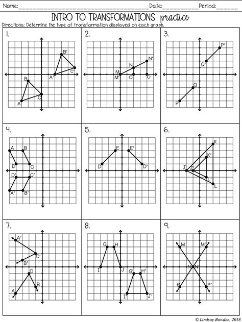 Geometry is an essential component of mathematics, and it is often taught through the use of worksheets. Worksheets can be used to help students understand the concepts of geometry by providing them with guided practice. One such concept is geometry transformations. Geometry transformations are changes that are applied to a given shape or figure, resulting in a new shape or figure. This can include translations, rotations, reflections, and enlargements.