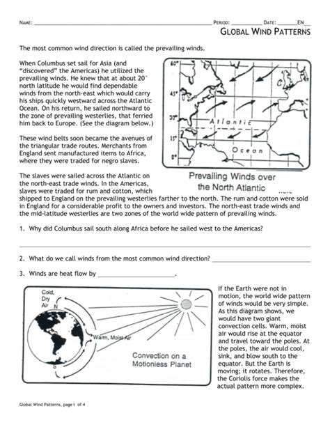 The global wind patterns worksheet is a valuable tool for tracking changes in wind direction across the globe. This worksheet provides a comprehensive overview of wind patterns around the world, allowing users to observe and analyze the varying directions of winds in different regions.