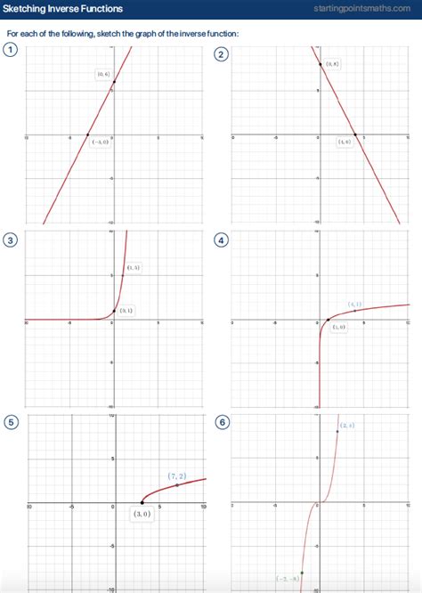By completing this worksheet, students will gain a better understanding of the relationship between inverse functions and graphs. They will learn how to graph functions and their inverses, and how to interpret the graphs. In addition, they will also practice their skills in finding equations from graphs.