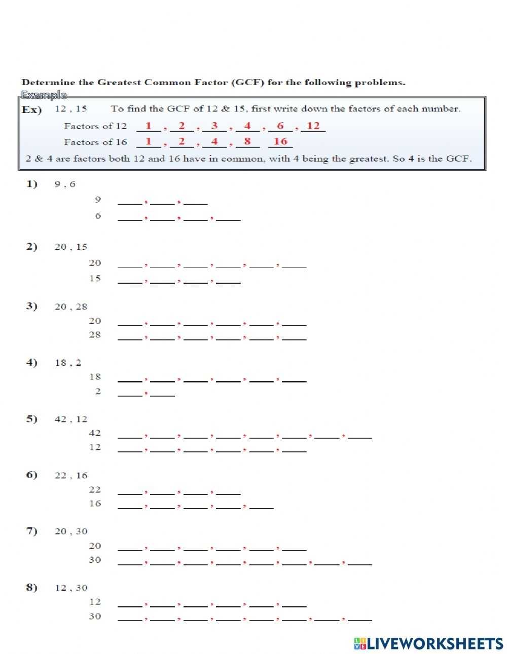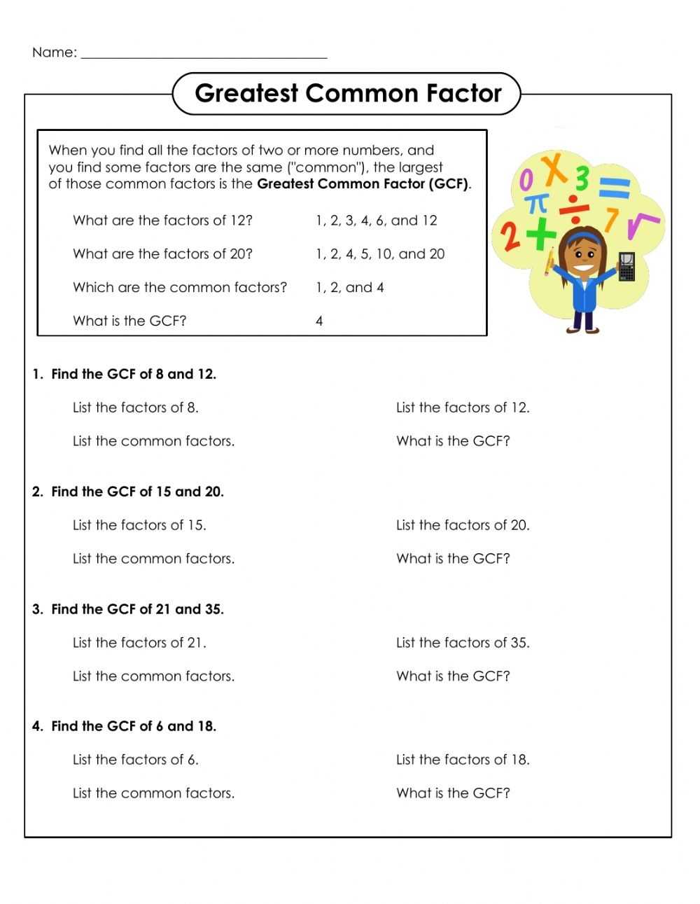 Greatest Common Factor (Gcf) Worksheet In Greatest Common Factor Worksheet