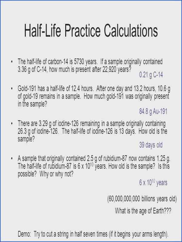 To begin, it is essential to first determine the type of radioactive material that is being measured. Different types of materials will have different decay rates, and it is important to select the right type of material for the calculation. Once the material is selected, the half-life worksheet should be filled out with the initial amount of material and the half-life of the material.