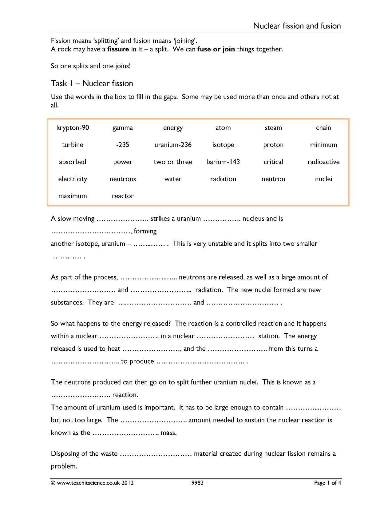 This worksheet provides an overview of nuclear decay and its implications. By understanding the concept of half-life and the process of nuclear decay, students will gain an understanding of its importance in the production of energy, the formation of elements, and the dating of objects. With this knowledge, students can better understand how nuclear decay affects the world around them.