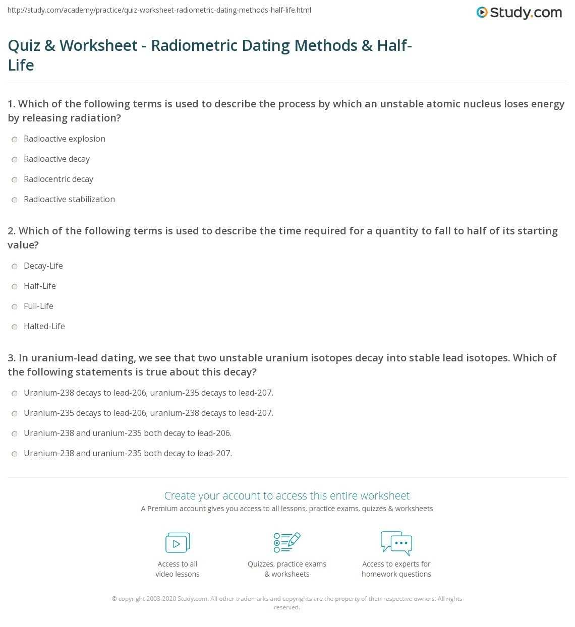 Radioactive decay rates can be determined using a half-life worksheet. Half-life is the amount of time it takes for half of the atoms in a sample to decay. In order to calculate the rate of decay, a half-life worksheet is used to measure the amount of radioactive material left after a certain period of time.