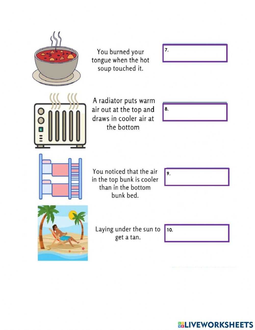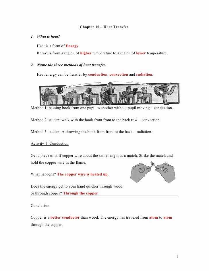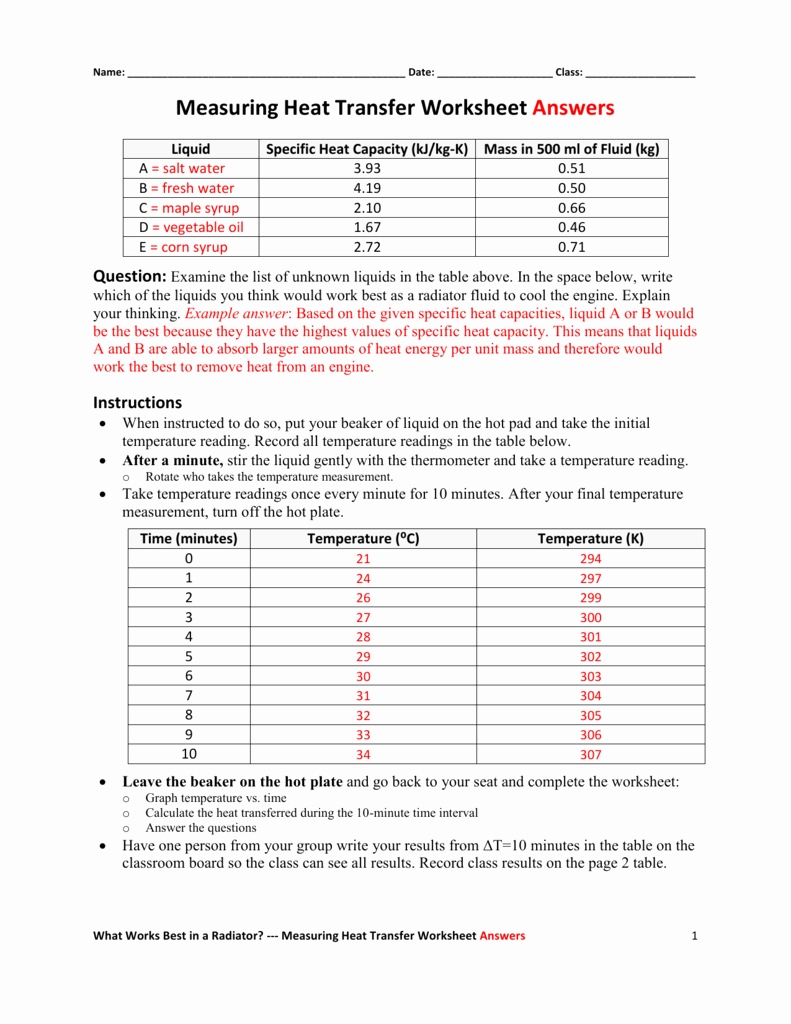 To begin this process, the answers to the heat transfer worksheet questions must be analyzed and interpreted. The worksheet should include questions about the properties of the objects involved in the heat transfer (such as their sizes and temperatures) as well as the environment in which the heat transfer occurs (such as the air temperature and humidity). It is also important to note any changes in the environment (such as a change in air temperature) that may affect the heat transfer.
