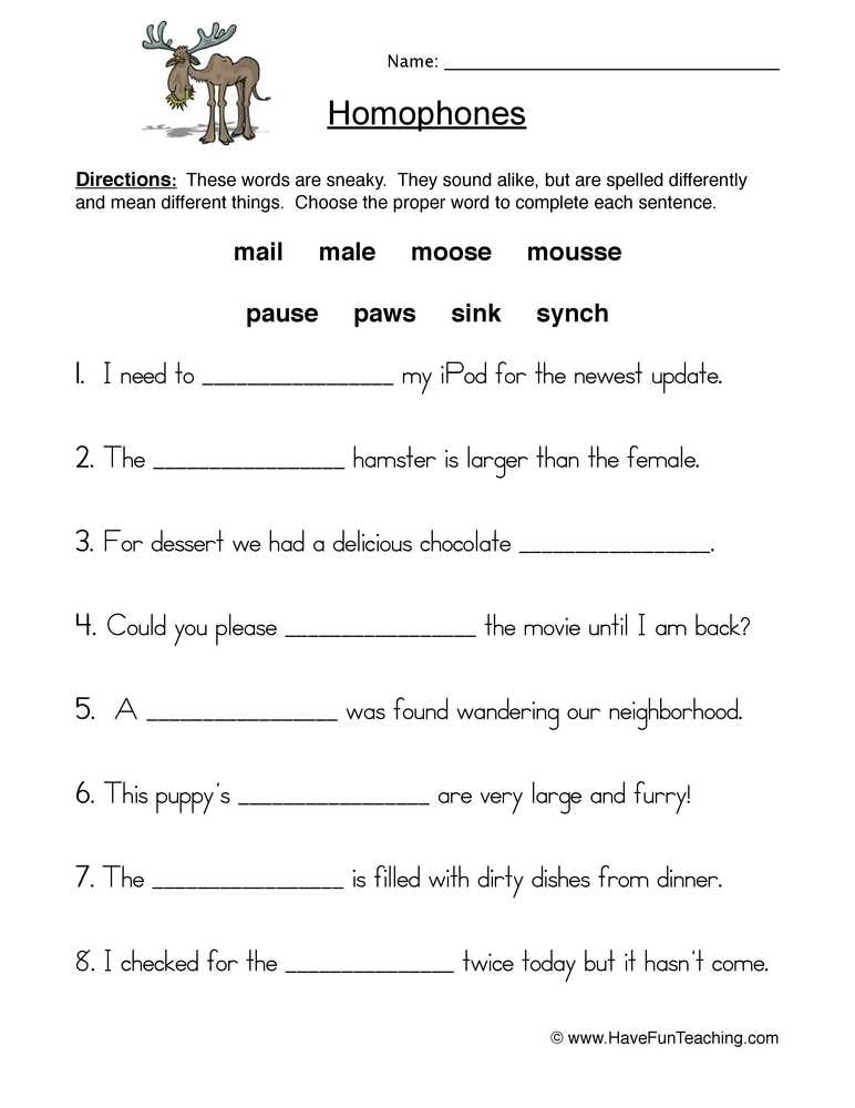 Homophones Worksheets Pdf Grade 4 Kidsworksheetfun - Second Grade Regarding Homophones Worksheet 2Nd Grade