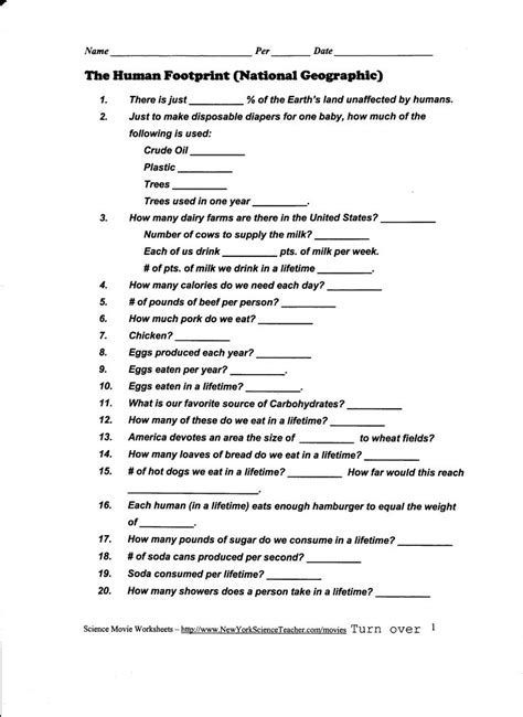In order to understand the relationship between human activity and climate change, it is important to consider the human footprint worksheet. This worksheet is designed to help students analyze the impact of their own lifestyle choices on the environment. Through this worksheet, students can identify the environmental impact of their daily activities and develop strategies for reducing their footprint. This includes reducing energy consumption, reducing water consumption, and reducing waste.