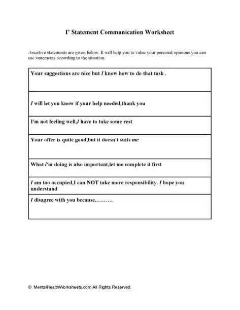 I' Statement Communication Worksheet - Mental Health Worksheets For I Feel Statements Worksheet