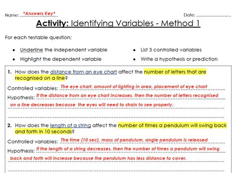 The use of an Identifying Variables Worksheet (IVW) as an assessment tool has become increasingly popular in modern classrooms. An IVW is a worksheet that provides students with a set of questions or tasks to identify different variables and their relationships in a given problem. This type of assessment allows teachers to evaluate their students’ understanding of a concept and the ability to apply it in a real-world context.