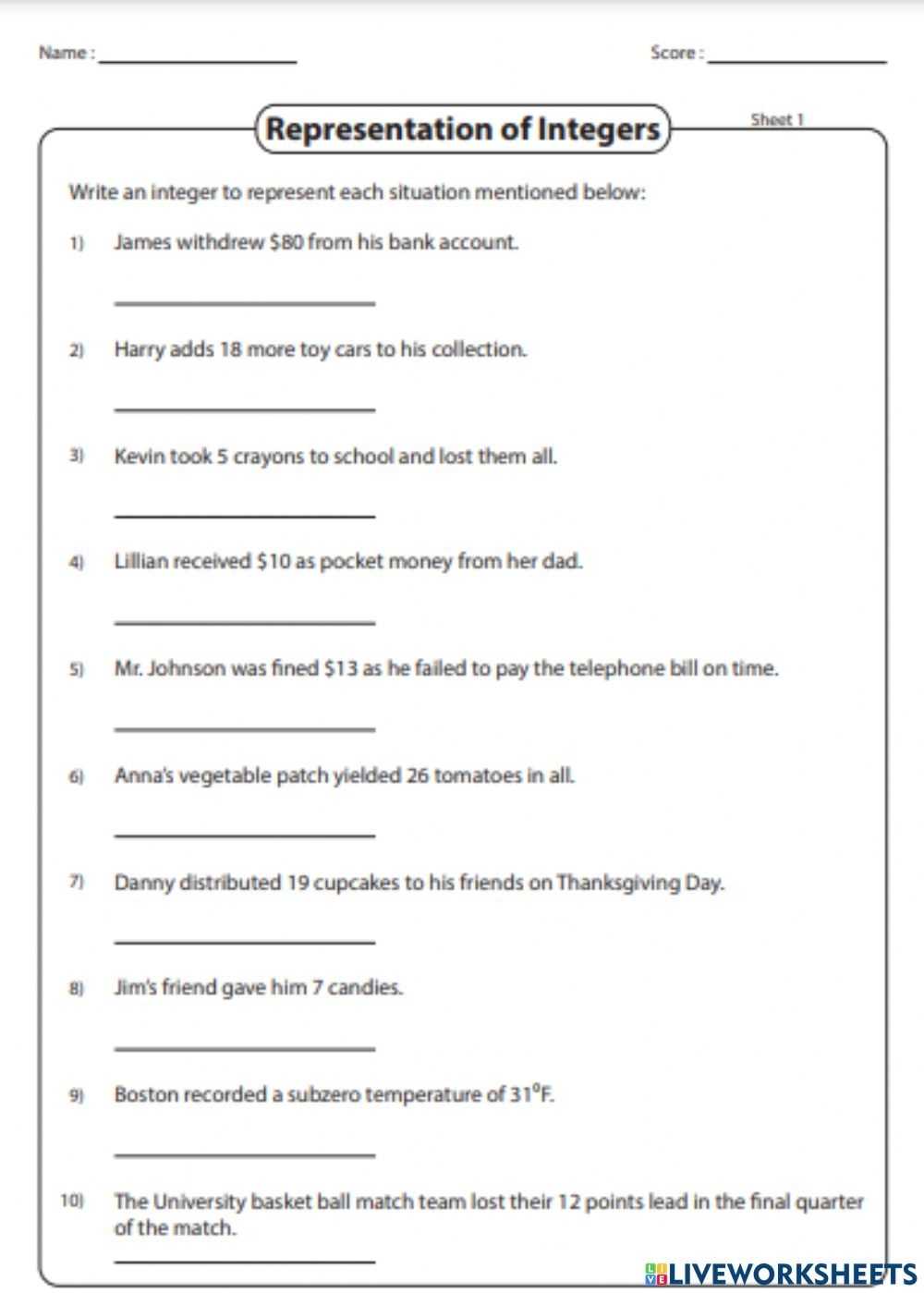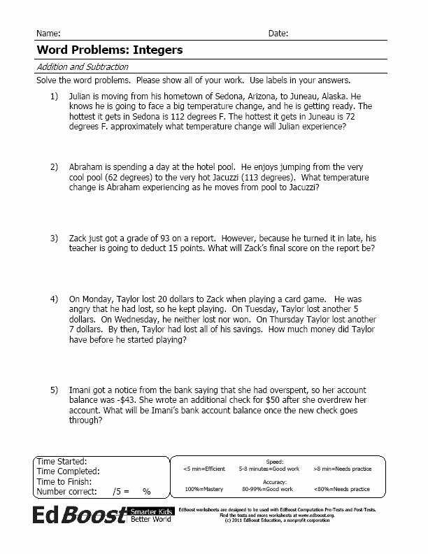 When using an integers word problems worksheet, it is important to read the questions carefully and make sure you understand the terms and concepts involved. It is helpful to draw a picture or diagram of the problem to help you visualize the situation. This will help you better understand the problem and how to solve it.