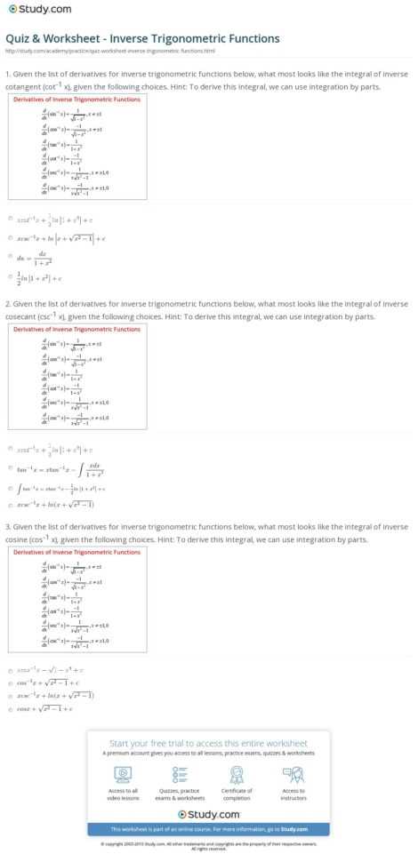 By following these tips, you should be well prepared for your inverse trigonometric functions worksheet exam. Good luck!