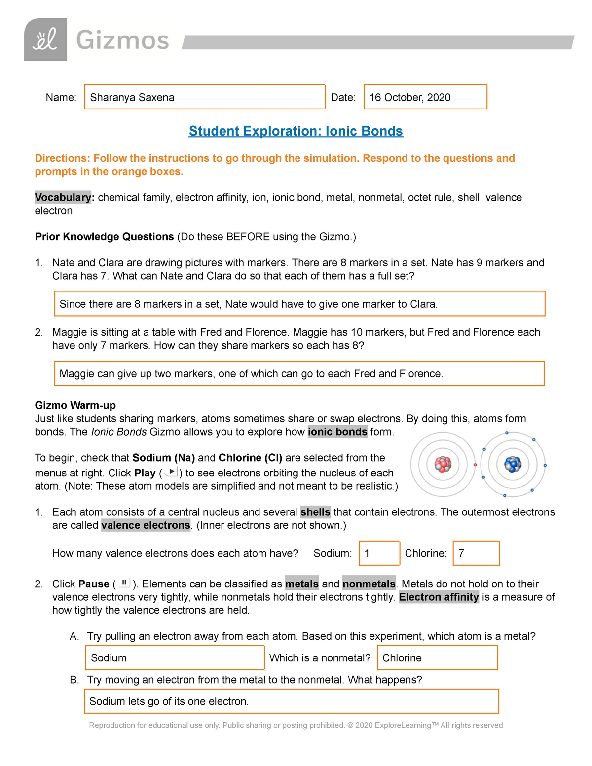 Exploring the Different Components of Ionic Bonding Worksheet Key