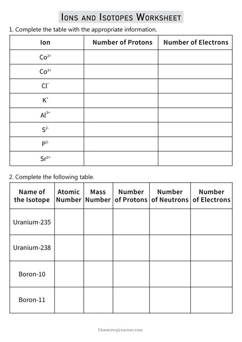 Ions and isotopes are two important concepts in chemistry. They have a variety of applications from understanding atomic structure, to the behavior of elements in chemical reactions, to the study of the structure of molecules. In this worksheet, we will explore the basics of ions and isotopes and discuss their properties and applications.