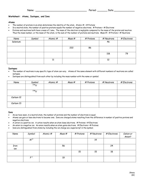 This worksheet aims to provide a comprehensive guide to unraveling the mysteries of atomic structure. Through understanding isotopes, ions, and atoms, readers can gain an appreciation of the complexity and beauty of atomic structure.