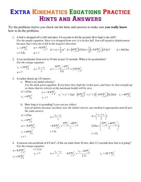 In addition, having a worksheet with answers can be a great way to review and practice any concepts or equations that may have been overlooked during the initial study process. By having access to a worksheet with answers, students can review the concepts and equations that they may have missed during their initial study process. This allows them to gain a better understanding of the principles of kinematics and how they are used to solve problems.