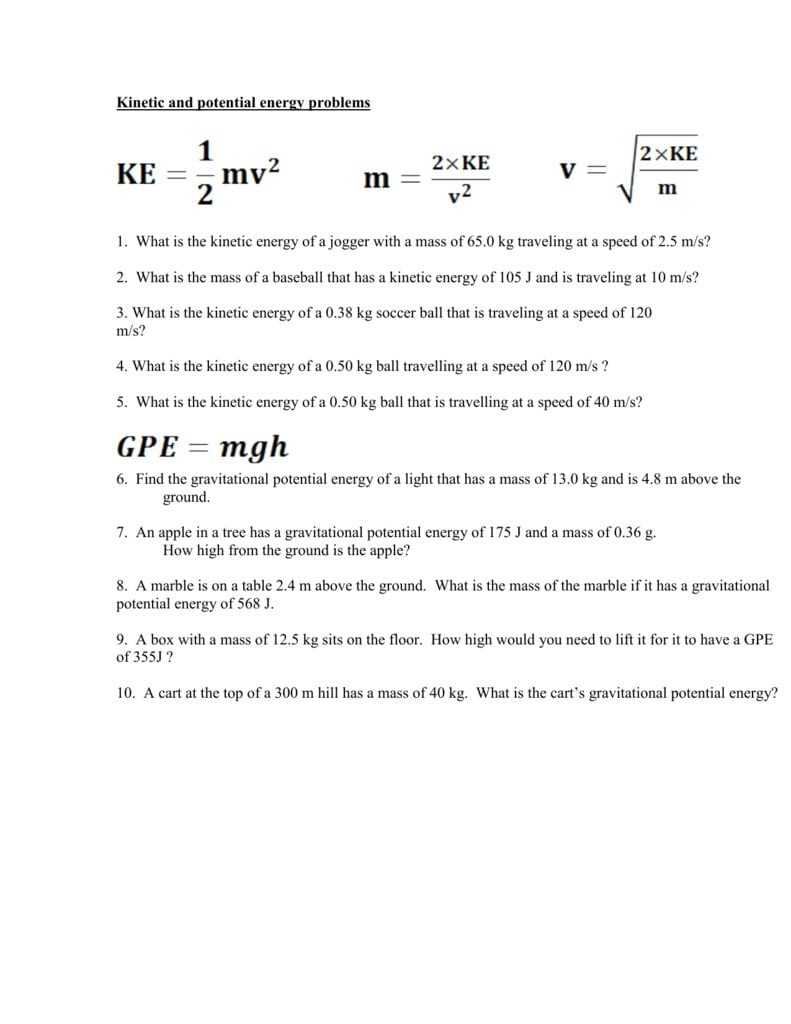 Kinetic and potential energy worksheets also provide an opportunity for students to practice problem-solving skills. By completing the worksheets, students can gain a better understanding of the principles of energy and how to apply them to real-world situations. This can be a valuable skill for science students, as it can help them to develop a better understanding of energy and its various forms.