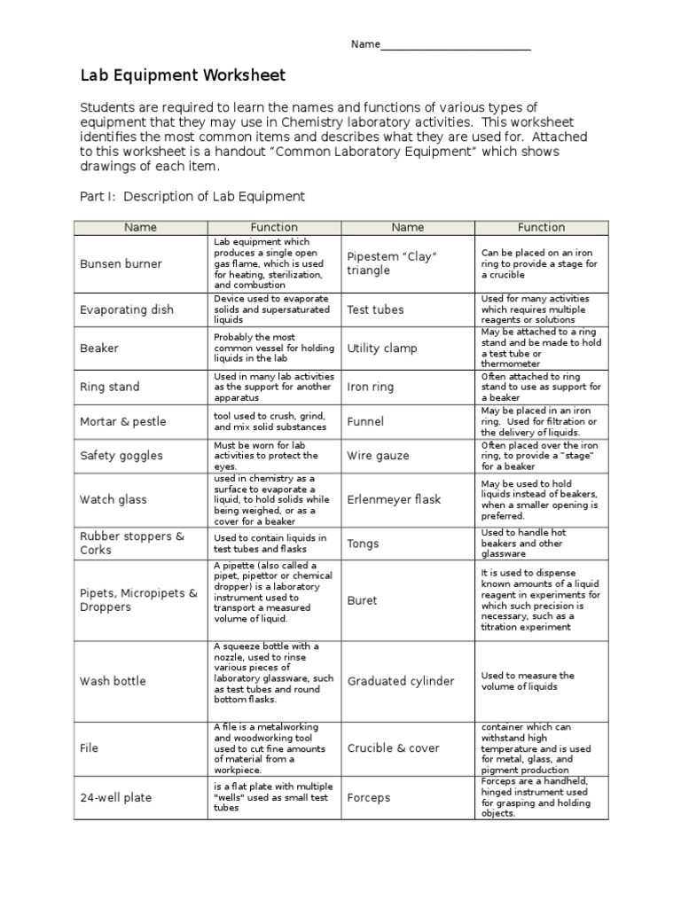 Using a lab equipment worksheet answer sheet when conducting experiments can be a great way to ensure accuracy and efficiency during laboratory work.