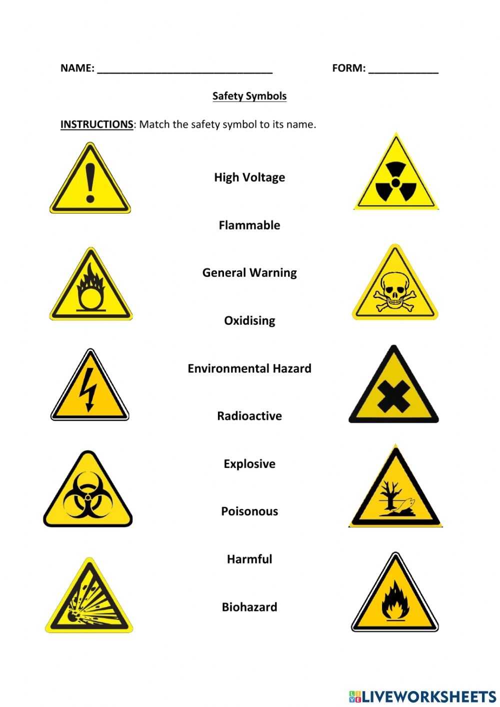 Lab Safety Symbols Worksheet