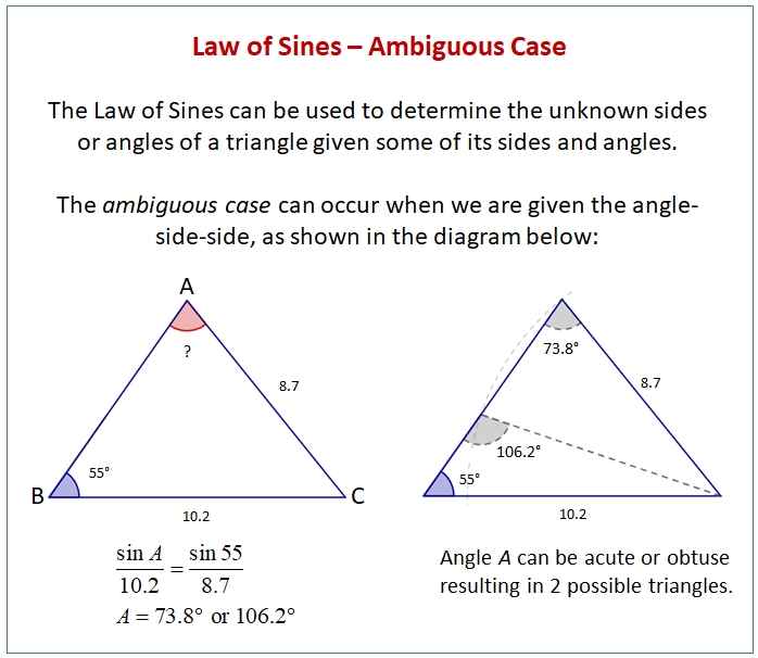 The Law Of Sines - Ambiguous Case (Examples, Solutions, Videos With Law Of Sines Worksheet