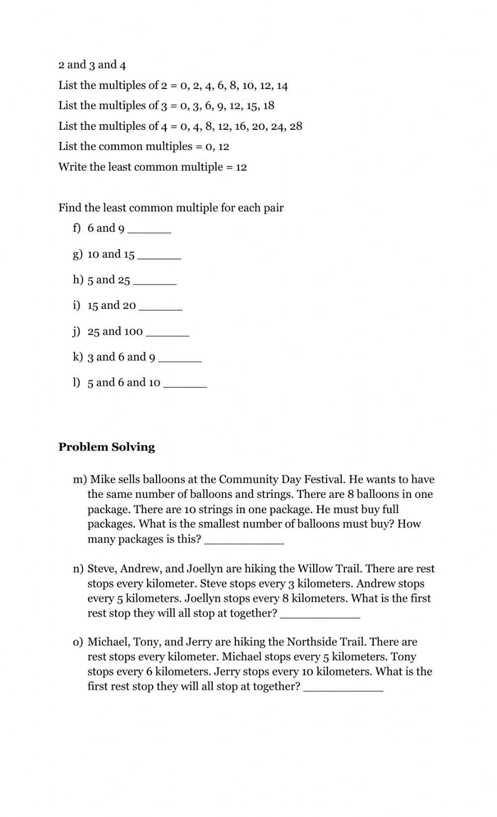 When solving least common multiple (LCM) problems, having a worksheet can be a helpful tool in organizing and understanding the problem. The worksheet serves as a guide to help the student understand the problem and determine the correct answer.