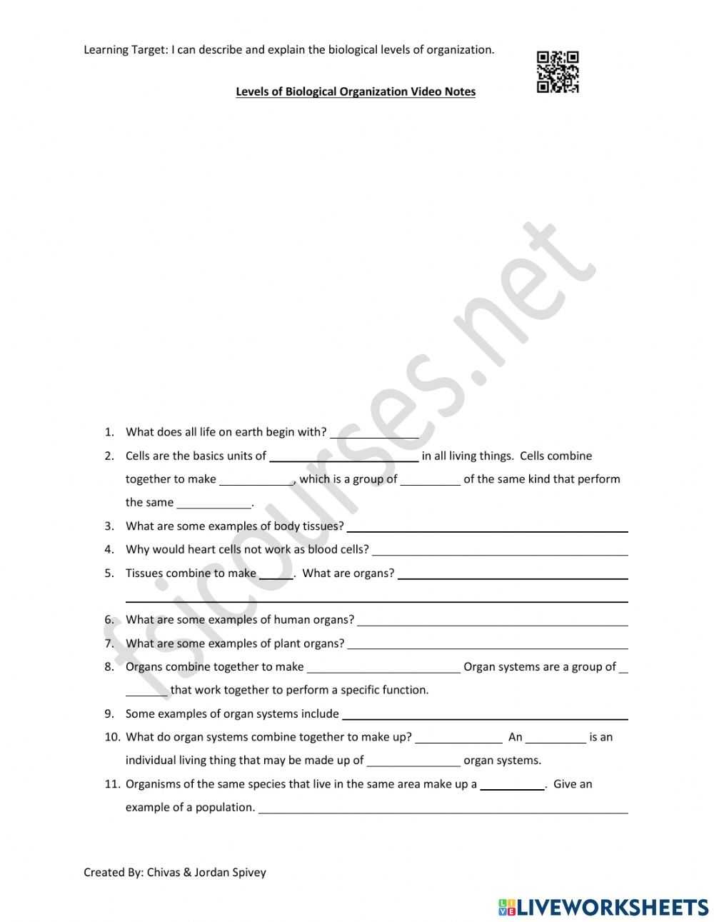 Exploring How Levels Of Biological Organization Worksheet Can Help Students Understand Living Organisms