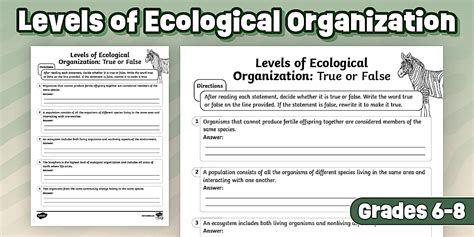 Exploring the Different Levels of Ecological Organization: A Worksheet Guide
