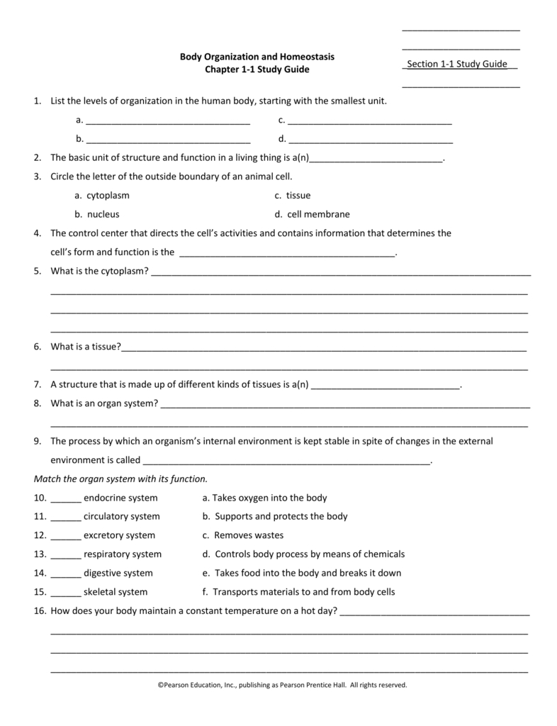 Levels Of Organization Worksheet