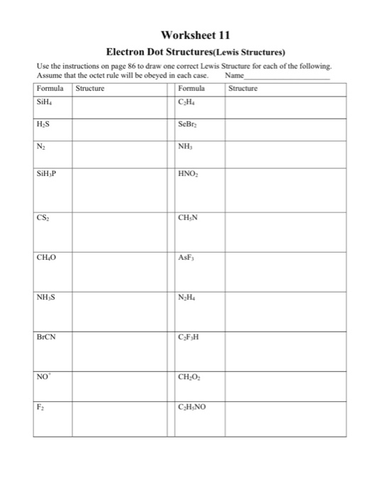 Solved Worksheet 11 Electron Dot Structures(Lewis | Chegg For Lewis Structures Worksheet With Answers