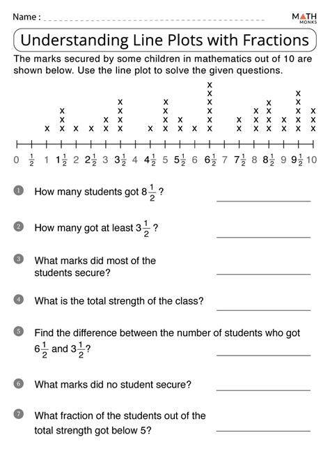 Using line plots with fractions worksheets can be an effective way to help students understand fractions better. These worksheets can be used to introduce students to the concept of fractions and help them to visualize the relationships between different fractions. By plotting fractions on a line graph, students can gain a better understanding of how fractions can be used in real-world situations.