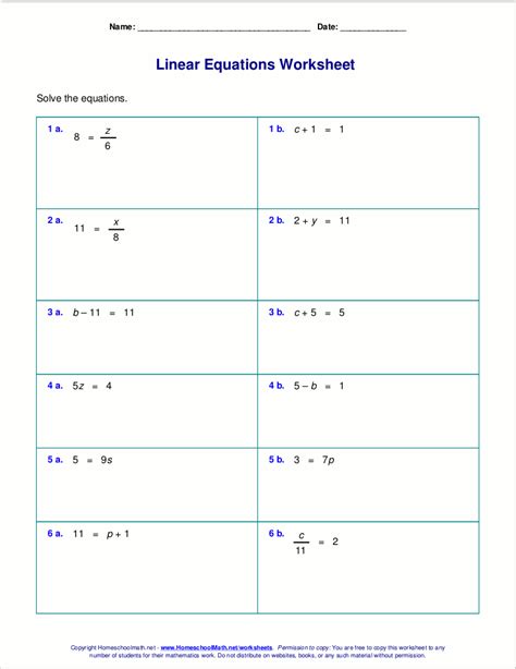 Using a linear equation worksheet PDF is a great way for students to practice their problem-solving skills. The worksheet is designed to help the student work through the problem step by step. By following the worksheet, the student can learn to identify the unknown variables, use the given information to form the equation, and then solve the equation using the appropriate techniques.