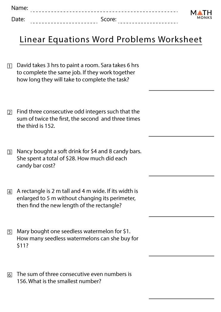 Linear Equations Word Problems Worksheets With Answer Key In Linear Inequalities Word Problems Worksheet