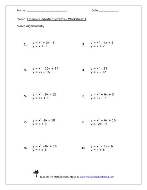 3. Practice: A linear quadratic systems worksheet also provides students with a chance to practice their problem-solving skills. By using the worksheet, students can practice solving linear systems of equations by plugging in different values and solving for the answers. This allows them to practice and strengthen their problem-solving skills without having to rely only on textbooks or other resources.