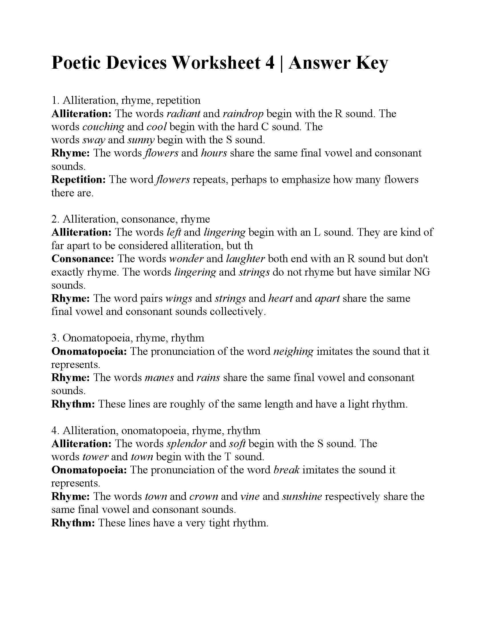 Finally, a literary devices worksheet should be accompanied by examples of each device in action. This will provide students with a better understanding of how each device can be used and how it can be used to enhance their writing. By utilizing a literary devices worksheet pdf, students can unlock the power of literary devices and use them to create more effective and engaging writing.