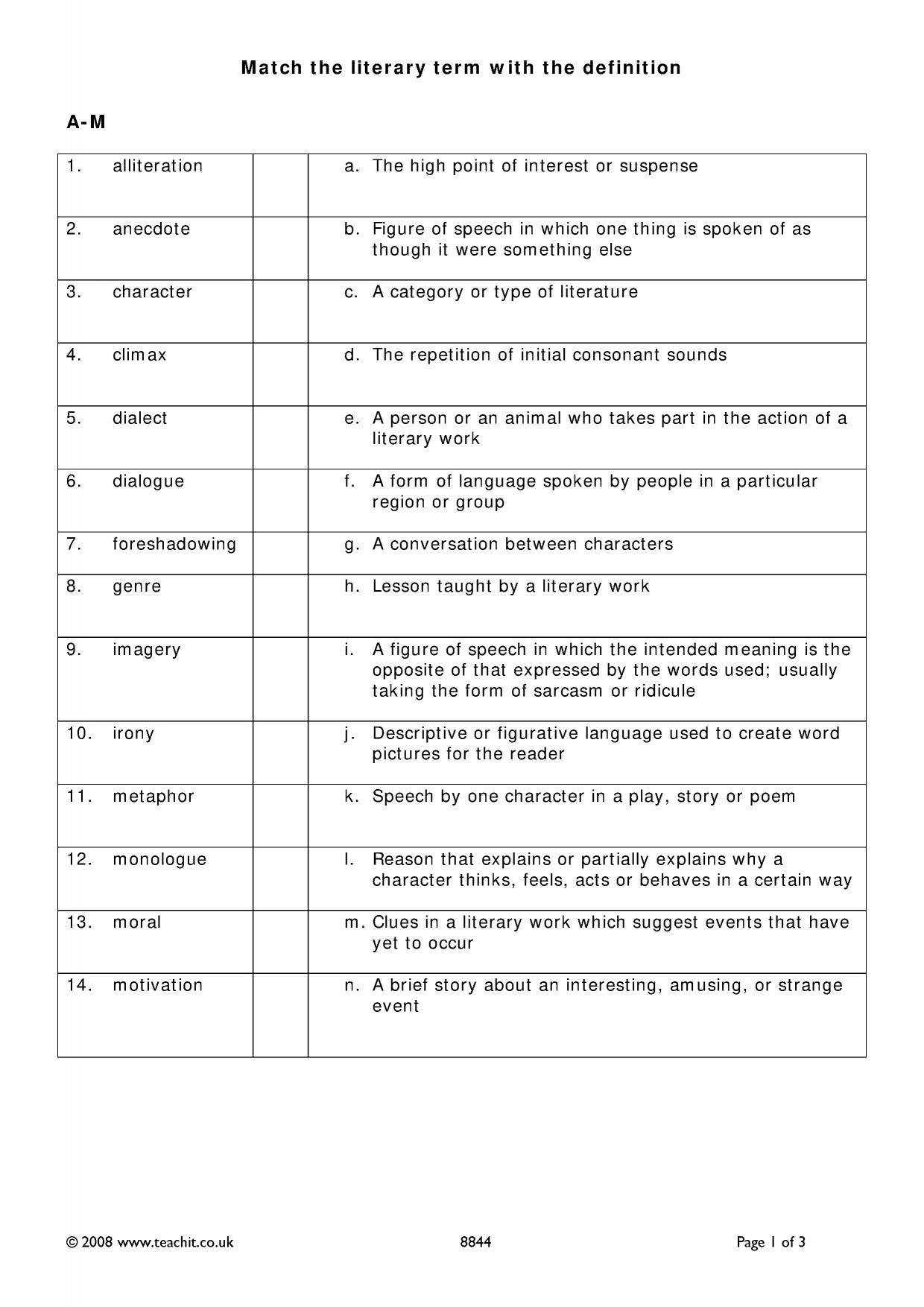 1.Understanding Literary Devices with a Literary Devices Worksheet Pdf