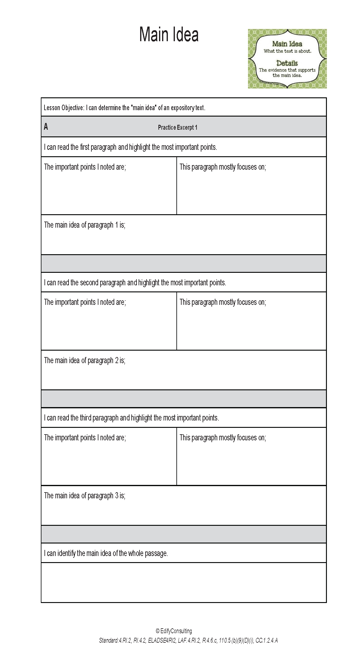 6. Graphic Organizers: Have students use graphic organizers to identify and organize the main ideas. This will help them understand the relationships between ideas and recognize the most important information.