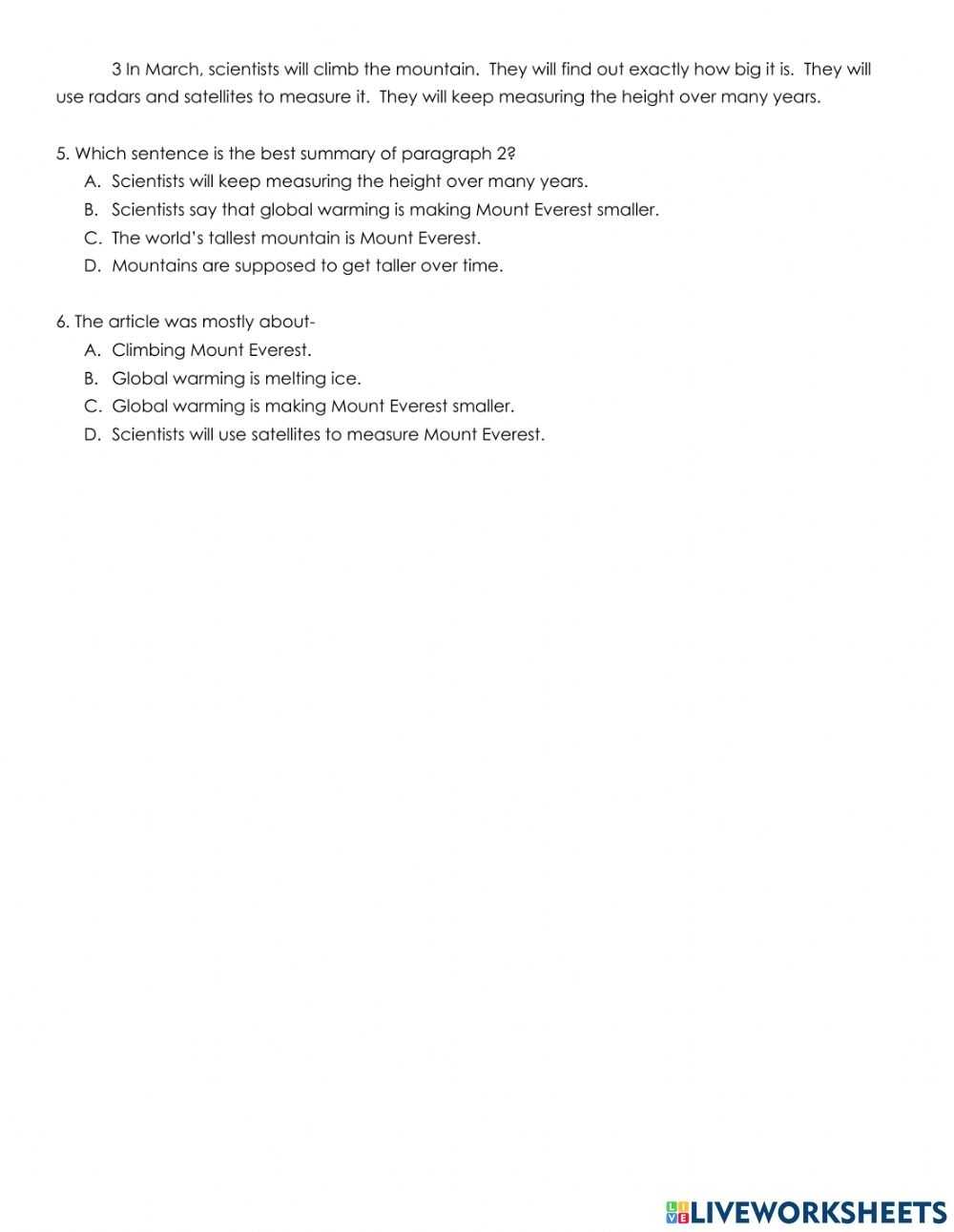 Another benefit of using a main idea worksheet in the classroom is that it helps to develop critical thinking skills. By requiring students to think critically about the main idea in a written piece, they can better analyze the argument and come up with stronger, more persuasive arguments. This is especially important for students who are preparing for standardized tests.