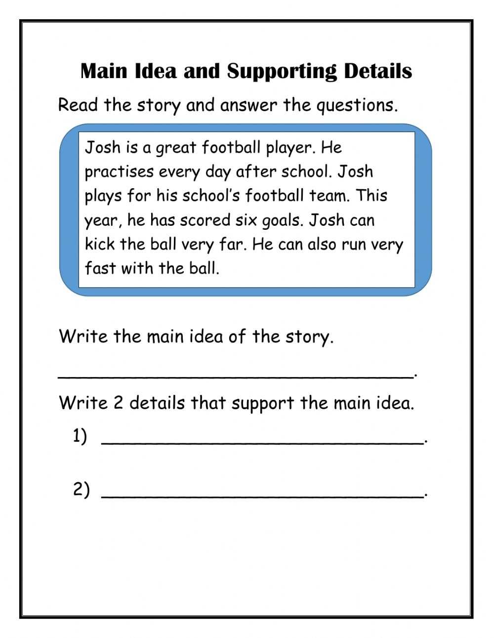 Main idea worksheets are a valuable tool for teachers in the classroom. They provide an effective way to reinforce and assess student understanding of main idea and supporting details within a text. Additionally, main idea worksheets can be used to help students identify the main ideas in a text, including distinguishing between the main idea and supporting details.