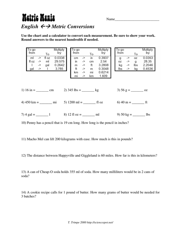 How to Create a Comprehensive Metric Conversion Worksheet Answer Key