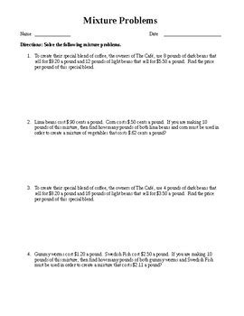 Mixture word problems, or problems involving combining two or more different types of information, can often be challenging to solve. Fortunately, by using a worksheet, you can easily break down the problem into smaller, more manageable steps. Here is a step-by-step guide to solving mixture word problems with a worksheet: