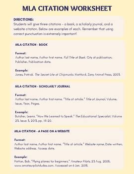 4. Utilize Practice Worksheets: Practice worksheets can be a great way to get familiar with MLA citation formats. Practice worksheets can provide you with examples of how to cite sources in MLA format and give you the opportunity to practice creating citations for different types of sources.