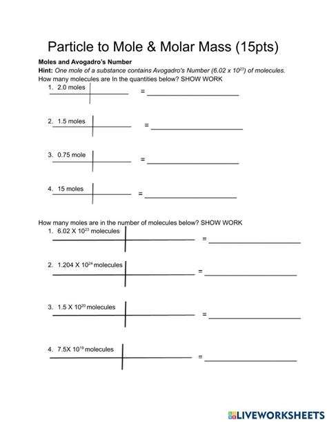 Once the worksheet is ready, it is important to create an engaging lesson plan that will help students to comprehend the material and apply it to their own context. For example, the teacher can present the worksheet in an interactive format, such as an online quiz, or encourage students to work together on a project to practice the molar conversion calculations.