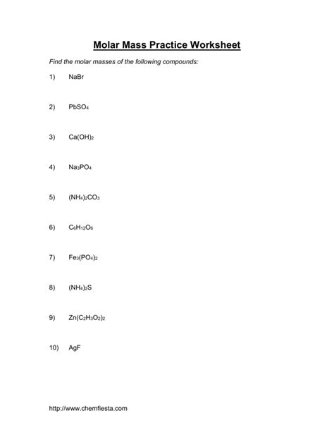 Molar mass practice worksheets are a great way to master the concepts of chemistry. These worksheets are designed to help students understand the relationship between elements and their molar mass. By completing a molar mass practice worksheet, students can gain a better understanding of the fundamentals of chemistry.