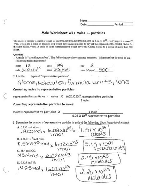 Mole Calculation Worksheet Answers With Work : Mole Worksheet 1 Answer With Mole Worksheet 1