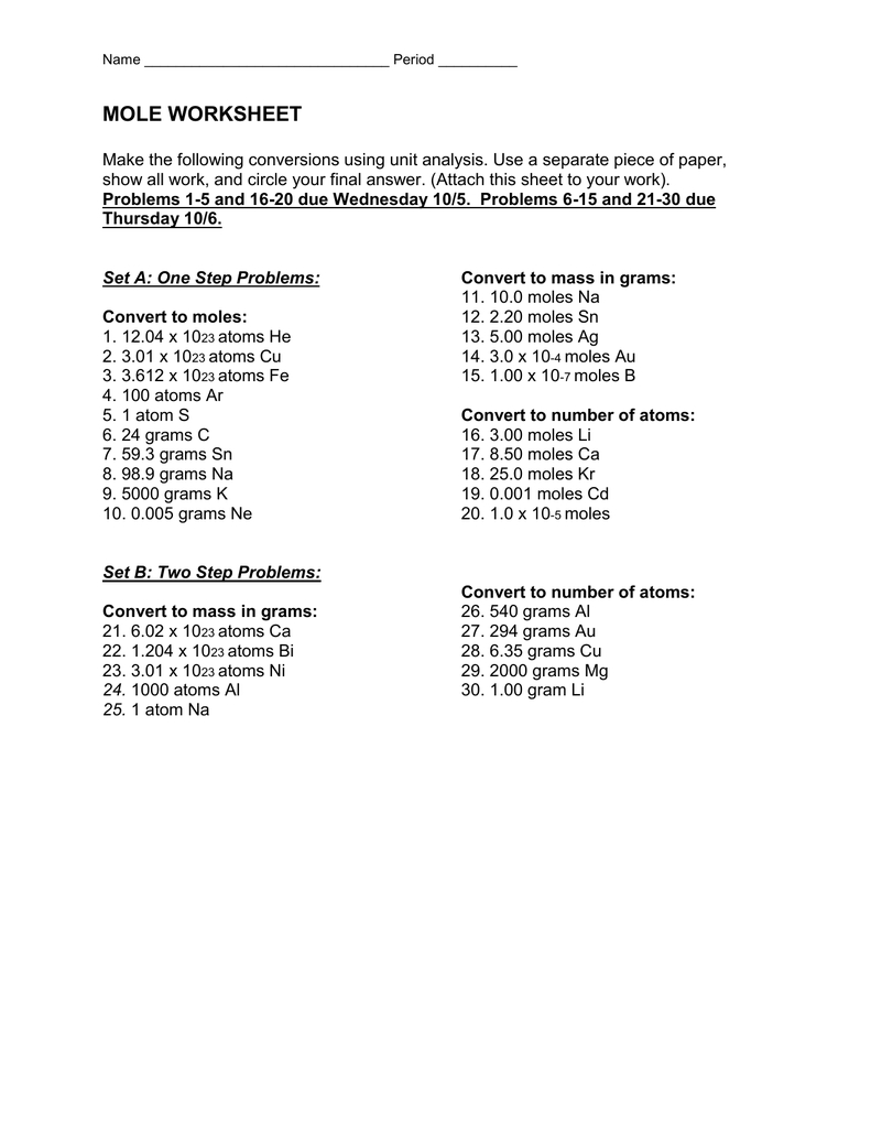 The Mole Worksheet 1 is a great resource for students to practice their understanding of the mole concept. It provides a variety of exercises that allow students to practice the mole concept in multiple ways. It also provides students with an opportunity to apply their knowledge of the mole concept to real-world problems. With the help of this worksheet, students can gain a better understanding of the mole concept and be better prepared for future academic and professional pursuits.