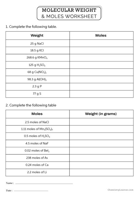 The Molecules and Grams Worksheet is an essential tool for anyone who wants to accurately identify molecules and calculate their molecular mass. By following the steps outlined above, students will be able to confidently identify molecules and accurately calculate their molecular mass.