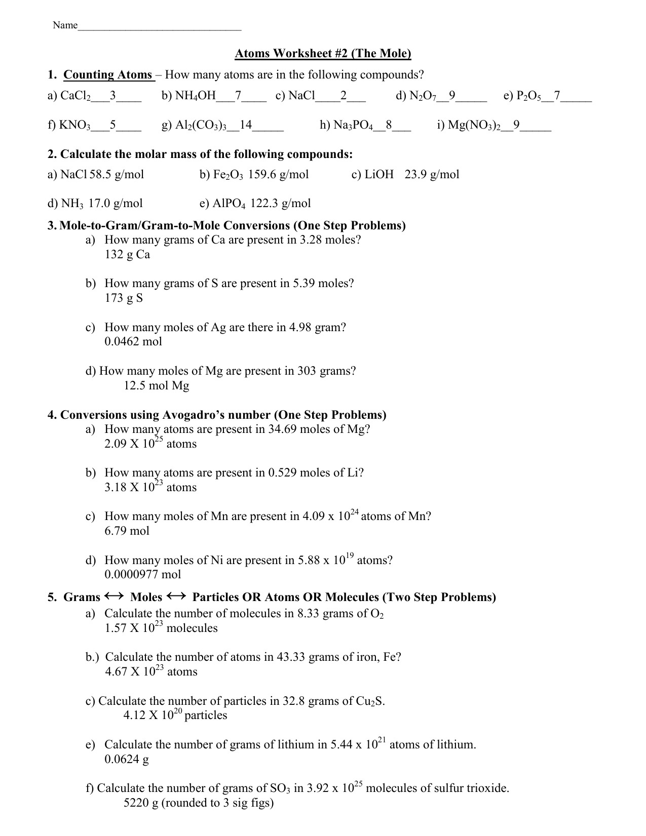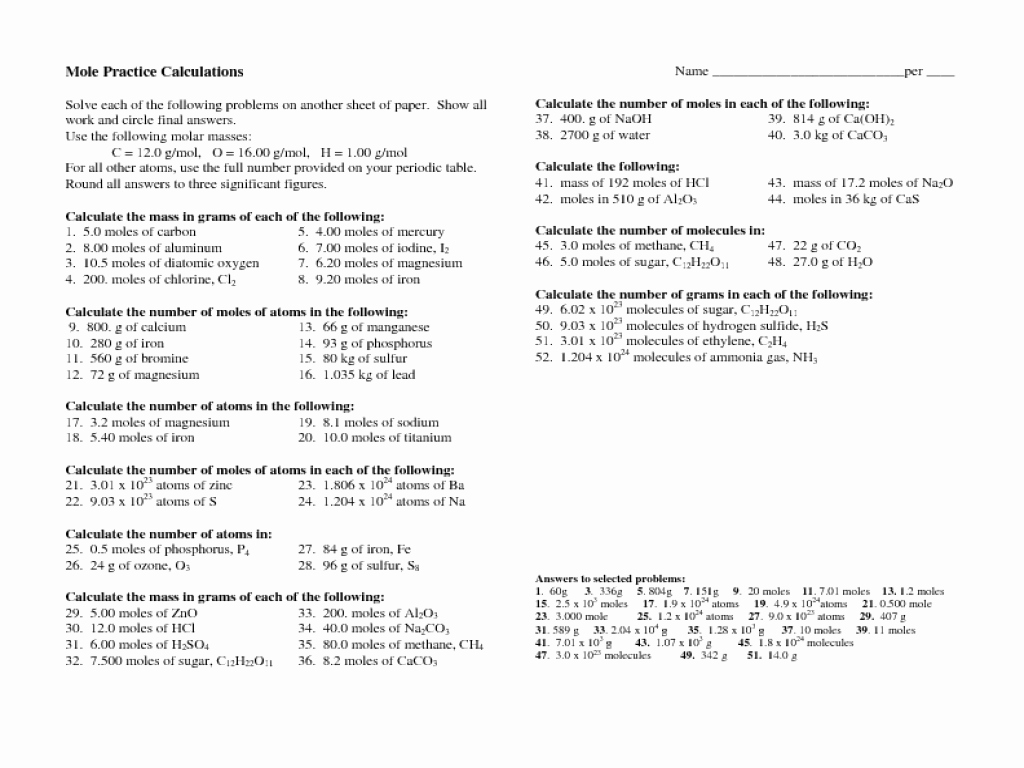 The Molecules and Grams Worksheet is an excellent tool for teaching students about the concept of moles, molecules, and grams. This worksheet helps students to understand the relationship between moles, molecules, and grams and how to calculate the mass of each one. Through the use of this worksheet, students can gain a better understanding of how to convert between different units of measurement and be able to apply this knowledge to real world situations.